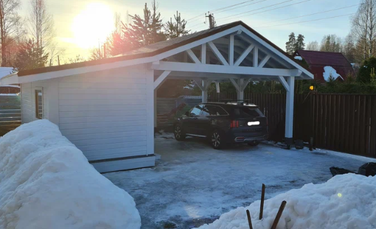 • Навес к частному дому для автомобиля ГРИМСТАД