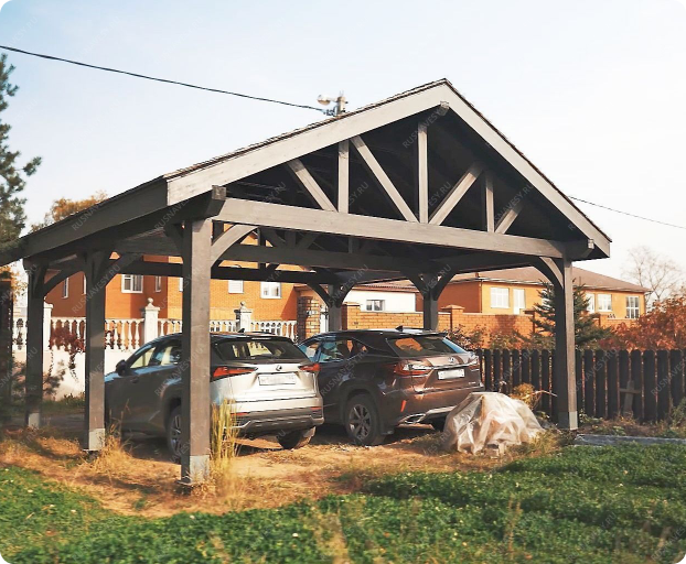 Компания «Русские навесы» – крупнейшей производитель навесов для одного автомобиля или нескольких единиц автотехники. В своих изделиях мы используем пиломатериалы из хвойных сортов древесины (ель, сосну), а в качестве конструктивного элемента – клееный брус.